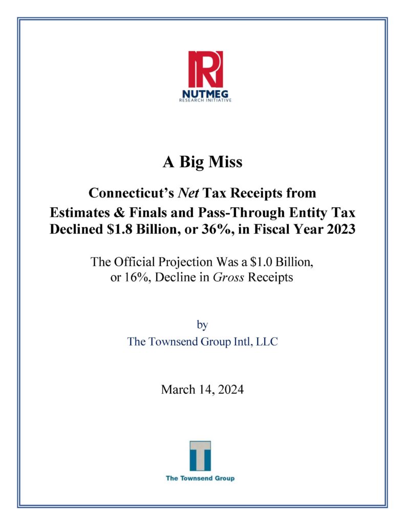 A Big Miss: CT’s Net Tax Receipts from E&F and PET Declined $1.8 Billion, or 36%, in Fiscal 2023