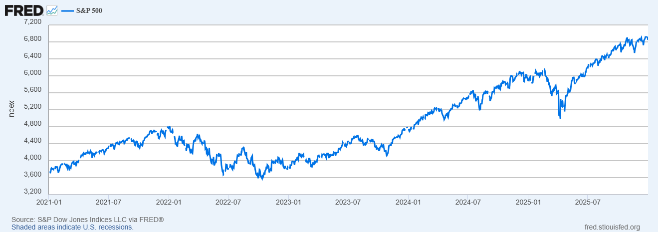 In contrast, the stock market has skyrocketed 86%, as the S&P Index has surged from 3701 in 2019 to 6896 at year-end 2025. The stupendous personal income growth of the relatively small cadre of professional investors has pushed up overall average personal income and the spending cap.