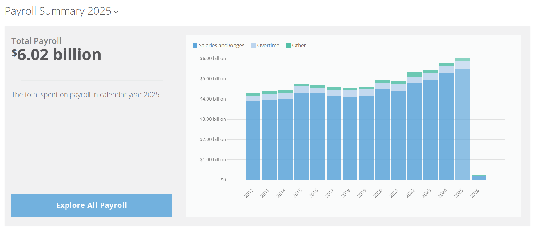 State employee wages and other forms of compensation are the biggest expense in the state budget, exceeding $10.5 billion out of the $28.6 billion current fiscal year budget adopted in the last Assembly session. Wages alone amount to $6.02 billion.